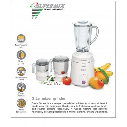 sujata supermix white 3 jar mixer grinder